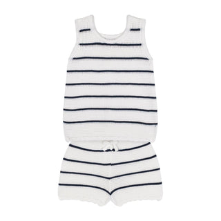 White Striped Knit Short Set