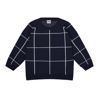White Checked Navy Sweatshirt