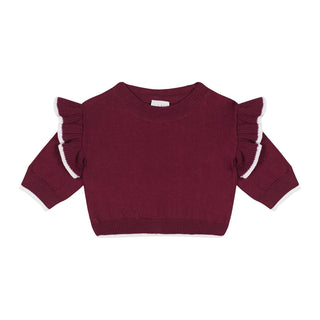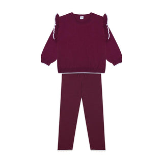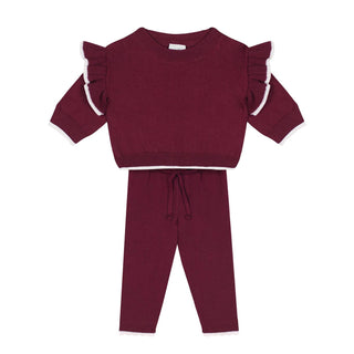 White Contrast Detailed Burgundy Knit Long Set