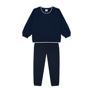 White Contrast Detailed Navy Knit Long Set