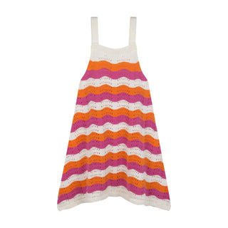 White-Orange- Pink Striped Knit Dress