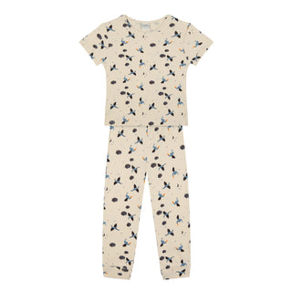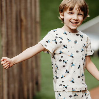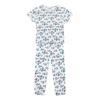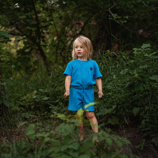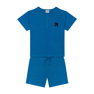 Blue Waffle Shorts set with Plane Embroidery
