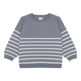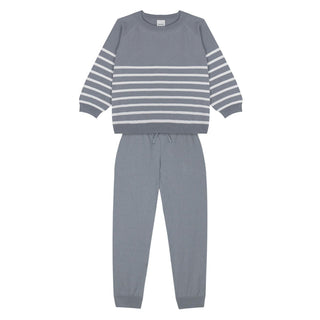 White Stiped Gray Knit Long Set
