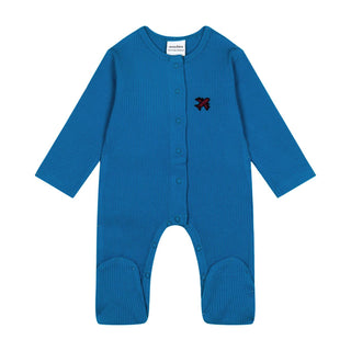 Blue Waffle Footsie with Plane Embroidery